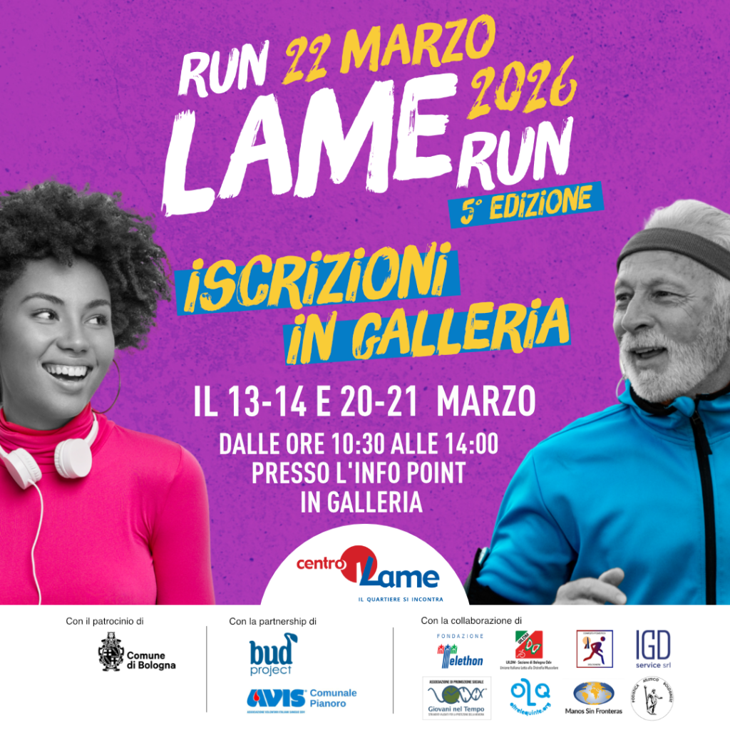 Sono aperte le iscrizioni alla Lame Run – 5ª edizione, la corsa–camminata non competitiva che domenica 22 marzo 2026 partirà dal Centrolame, un appuntamento aperto a tutti che unisce sport, movimento e solidarietà.